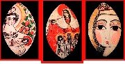 Художниця, використовуючи часто забуті сьогодні, але такі зрілі у своїй геніальній простоті, плоди української народної культури, зокрема, народної гравюри та ікони на склі, створює поживу для сучасної культури. Богородиця з дитям, архангел Михаїл, святий Юрій Змієборець, святий Василій Великий, святий Миколай Чудотворець, святі верховні апостоли Петро і Павло, всі найпопулярніші в Україні святі, покровителі міст, хранителі Церкви, охоронці від злих сил, опікуни тварин та збіжжя, заступники у молитві; ті, що поруч із Христом перебувають на небі в царських одежах; ті, в яких перебуває Христос; ті, що приносять плід…