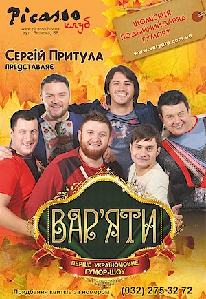 Щомісяця у львівському клубі Picasso звучать виключно нові жарти від першого україномовного гумор-шоу «Вар’яти» і так вже більше, ніж два роки.