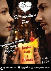 Витончена італійська кухня, романтична атмосфера і приємна музика - ідеальний набір для закоханих! У День Святого Валентина для гостей співає Джошуа Пратт, а наш шеф-кухар пропонує смачну італійську вечерю!