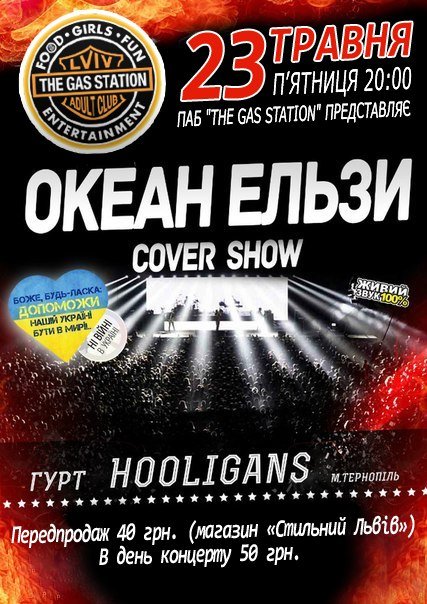 Дві години кращих хітів легендарного, гурту Океан Ельзи ви можете почути 23 травня в пабі "The gas station" ! Готуйтеся до шаленого драйву та неймовірного вибуху емоцій які ми вам подаруємо в цей вечір!! На сцені гурт Hooligans!