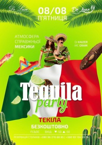 На Вас чекають запальні конкурси, мексиканська атмосфера та національний напій Мексики - текіла.