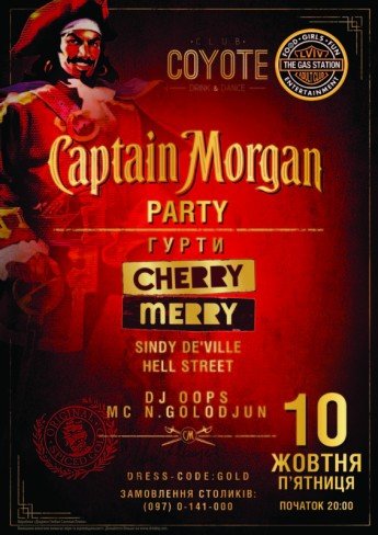 Пориньте в атмосферу пригод в стилі Капітана Моргана протягом всього вечора. На вході Вас будуть зустрічати помічниці Капітана Моргана.