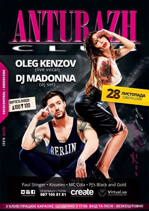 Незабутня вечірка яка запам'ятається на довго. Харизматичний Олег Кензов заспіває знайомі Вам пісні. Dj Madonna надасть ритму вечірці.