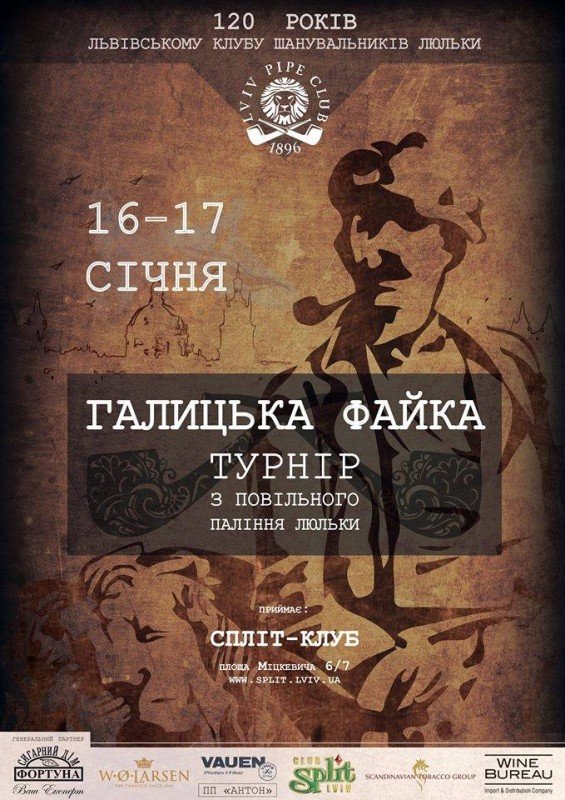 Найстаріший в Україні Львівський клуб шанувальників люльки відзначає 120 ліття з дня заснування. Запрошуємо шанувальників та друзів на виставку та турнір "Галицька файка" 16-17 січня 2016 за адресою: Львів, площа Міцкевича 6/7, "Спліт-клуб"