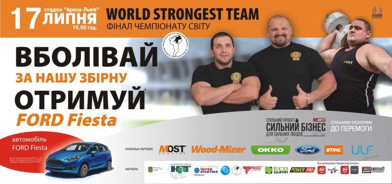 Пройде фінал парного чемпіонату світу зі стронгмену серед чоловіків «World Strongest Team». Для з’ясування титулу «Найсильніша нація планети 2016» зійдуться 16 найсильніших команд світу. Нашу державу будуть представляти майстри спорту міжнародного класу Олександр Лашин (Маріуполь) та Володимир Рекша (Львів).