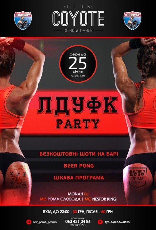 Друзі!!! Чекаємо Вас в клубі Coyote, це буде неймовірне закінчення зимових канікул. Збиреться весь бомонд ЛДУФК