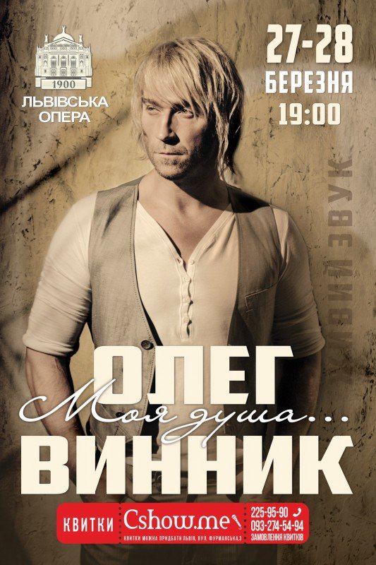 Олег Винник - найпопулярніший і гастролючий артист. Що року він дає не менше 150 сольних концертів і входить в трійку виконавців, чиї пісні є найбільш часто прослуховуються в Інтернеті і соціальних мережах. Аншлаги на його виступах - звична справа, адже квитки у всіх містах розкуповуються за місяці до концерту, а його пісні звучать в ефірі радіостанцій і з телевізійних екранів.