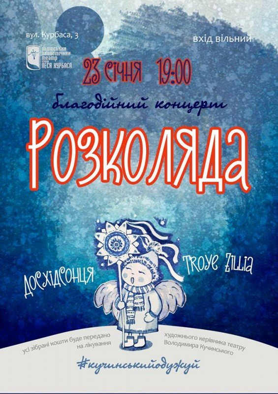 В Театрі імені Леся Курбаса відбудеться благодійна Розколяда від гурту автентичного співу ДоСхідСонця та арт фольк гурту Troye Zillia в рамках марафону #кучинськийодужуй.
