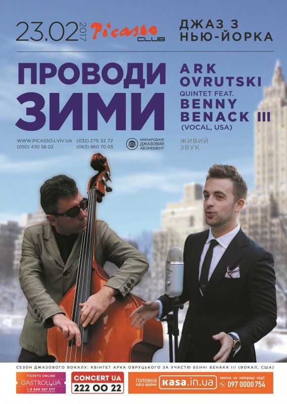 У розпал Масляної ритми світової столиці джазу остаточно проженуть зимову депресію і мороз з ваших сердець! У затишному залі клубу Bel’Etage (вул. Шота Руставелі, 17а) виступить квартет відомого контрабасиста Арка Овруцького (Арк Ovrutski). Музикант, який нині проживає в Нью-Йорку, презентує нову програму Winter Farewell.