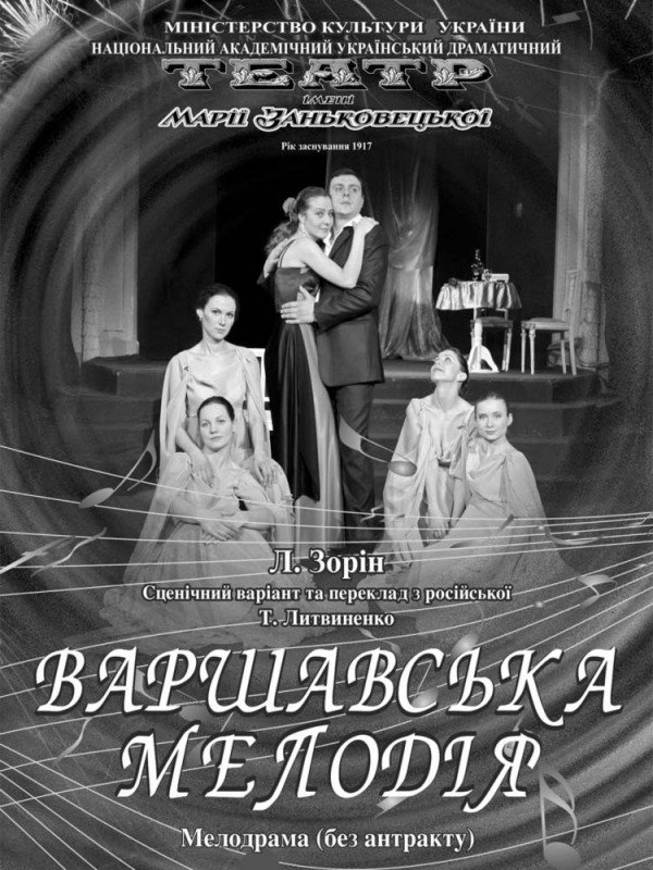 П’єса «Варшавська мелодія» написана Леонідом Зоріном в 1967 році – саме тоді, коли дозволений був дещо вільніший погляд на світ і можна було критикувати окремі недоліки сталінського керівництва. У цьому випадку – закон 1947 р., що забороняв шлюби з іноземцями. Тонка, дотепна і навіть трагічна історія кохання двох молодих людей – польської студентки Гелени і радянського студента Віктора – котрі не без втрат щойно пережили війну і нарешті знайшли один в одному прихисток, опору і сенс у житті, проте все це було зруйновано отим злощасним законом.