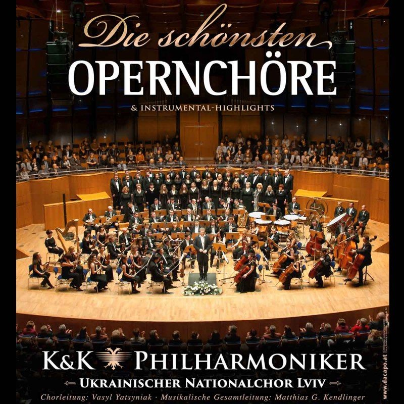 Симфонічний оркестр K&K Philharmoniker та Український національний хор (Львів) запрошують на концерт, який перенесе Вас у світ оперного мистецтва Моцарта, Верді та Вагнера під керівництвом австрійського диригента Маттіаса Георга Кендлінгера та українського хормейстера Василя Яциняка.
