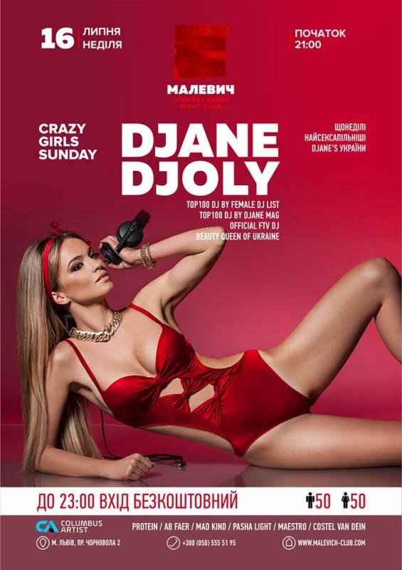 Crazy Girls Sunday з талановитою красунею DJ Djane Djoly.
