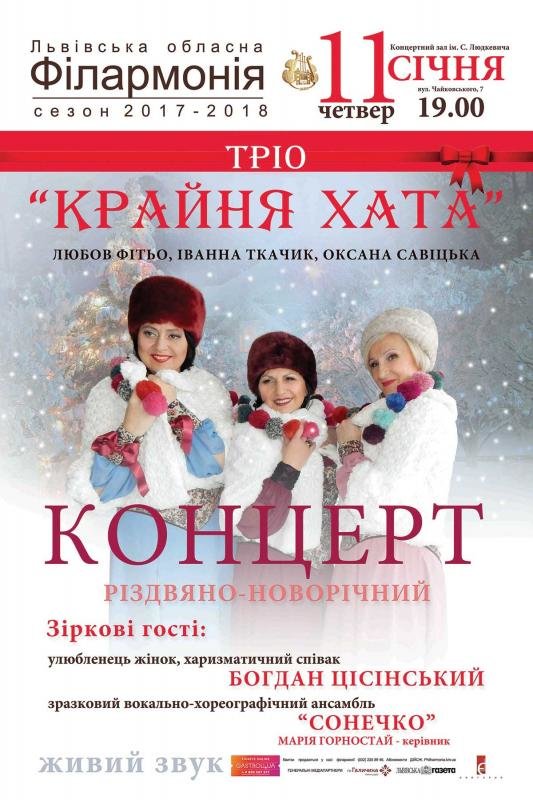 Тріо «Крайня Хата» запрошує на свій теплий новорічно-різдвяний концерт.