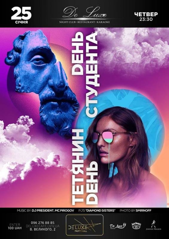 Запрошує всіх студентів і звичайно Тетян, Тань, Танюш на традиційний Тетянин день або січневий варіант Дня Студента!