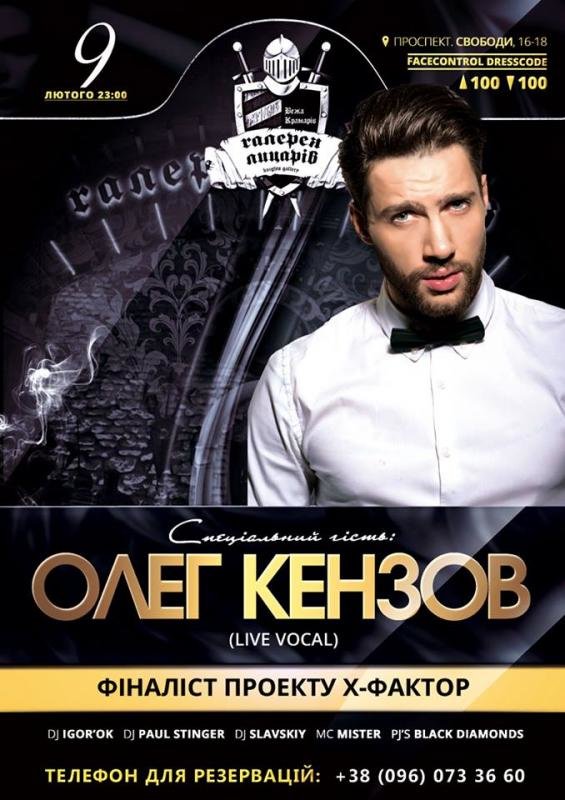 Для Вас виступить і подарує свої кращі вокальні композиції фіналіст проекту Х-фактор, харизматичний та енергійний, улюбленець жіночої половини людства, позитивний Олег Кензов.