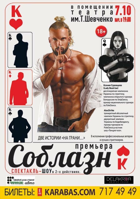 В представлении участвуют: 10-кратная чемпионка Украины по стриптизу, чемпионка открытого турнира Белоруссии по Strip Dance сногсшибательная Ксения Суровцева (Lady Beatrise) и 3-кратный абсолютный чемпион Украины по стриптизу, 2-кратный чемпион Украины по бодибилдингу, призёр Pole Dance, участник телешоу «Танцуют все» Алекс Страйк.