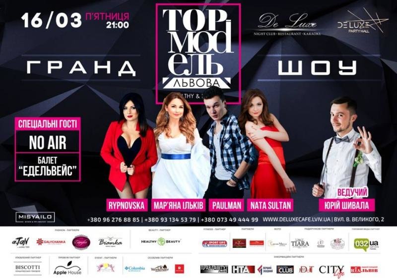 Яскрава шоу-програма за участі: PAULMAN, Rypnovska, Мар'яна Ільків, Nata Sultan. Спеціальні гості - балет ЕДЕЛЬВЕЙС та гурт NO AIR. Ведучий - тревел-блогер та телеведучий Юра Шивала!