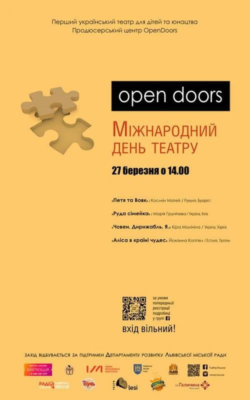 Перший театр (в колишньому Перший український театр для дітей та юнацтва) спільно з Продюсерським центром «OpenDoors» в Міжнародний День театру проводять першу у Львові Міжнародну лабораторію для молодих режисерів «Відкриті Двері» .