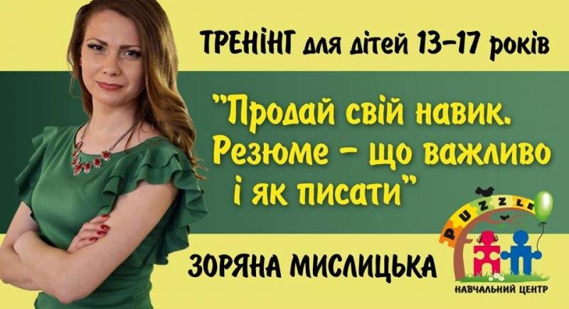 Тренер - Мислицька Зоряна, HR - manager, займається підбором персоналу понад 8 років, тренер по Softskills.