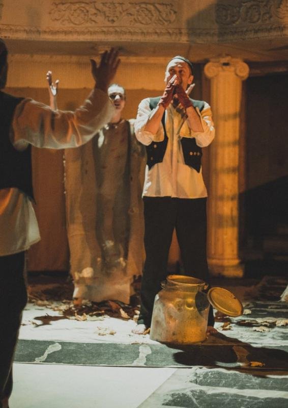 … На сцені – вистава-притча про людські пристрасті, вірність, зраду, фанатизм, ланцюг іпостасей людського духу, кожна ланка якого – самооцінка сама по собі, а разом вони утворюють багатошаровий поліфонічний твір…