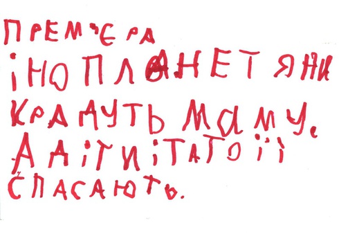 Чекаємо вас на прем’єрі наших великих досягнень, де діти продемонструють свої вміння, набуті за два тижні кропіткої праці та представлять виставу «Життя дітей та інопланетян». Діти самі написали тексти, власноруч створили ляльку і самі будуть акторами у своїй виставі.Звісно,дорослі допомагали, але дитяча фантазія і теми, які діти підіймають у виставі, гідна найвищих премій за драматургію і соціально важливу справу в галузі мистецтва.
