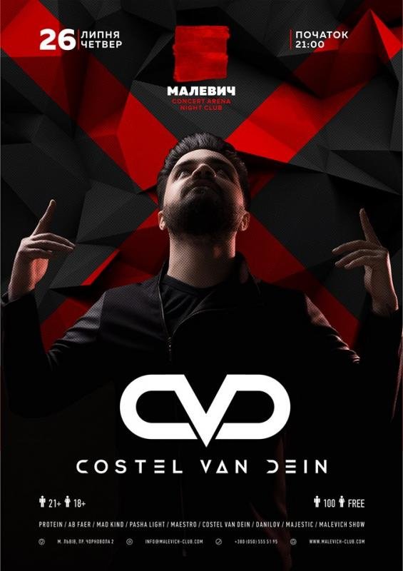 26 липня, четвер – нестримний Costel van Dein роздає groove. Вхід: дівчатам – безкоштовно, хлопцям – 100 грн