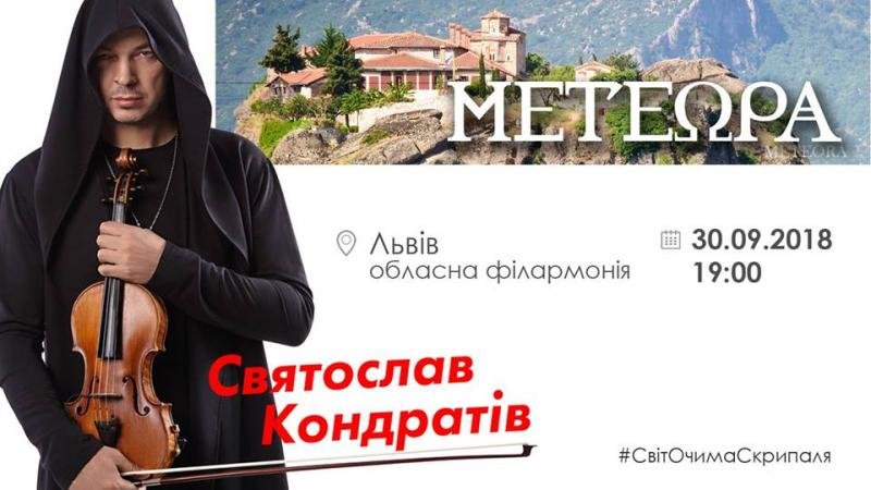 Вітаємо Вас, та від імені Маестро скрипки Святослава Кондратіва запрошуємо на унікальну подію у вашому місті – концерт проекту #СвітОчимаСкрипаля в рамках другого Всеукраїнського туру з новою програмою «МETEOPA».В цей вечір Ви відчуєте океан емоцій від романтичної та експресивної музики Святослава Кондратіва.