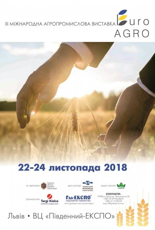Традиційно у листопаді у Львові відбудеться III міжнародна агропромислова виставка «EuroAGRO-2018», яка є яскравим прикладом співпраці двох країн-організаторів TARGI KIELCE S.A. (Polska,Kielce) та ПрАТ «Гал-ЕКСПО» (Україна, Львів), які запрошують українські компанії до участі в Міжнародній агропромисловій виставці «EuroAGRO» у Львові.