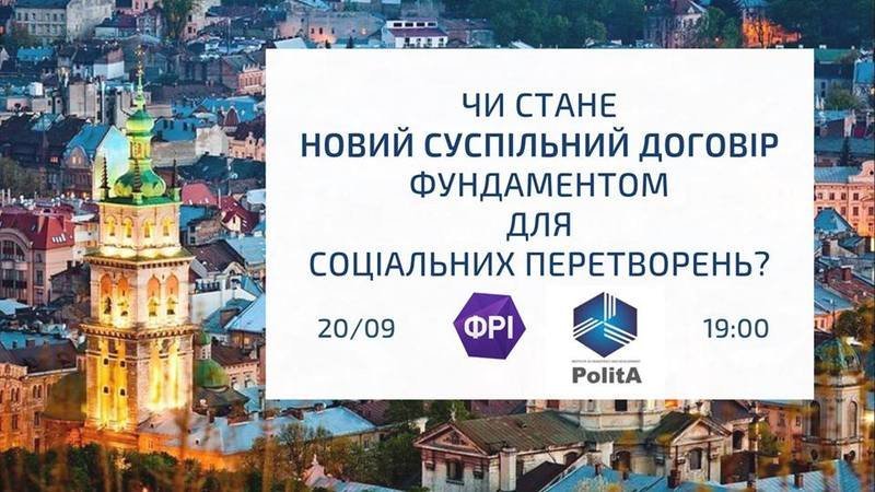 Інститут демократії та розвитку «PolitA» спільно з «Foundation for future» проведуть дискусію на тему: «Чи стане Новий Суспільний договір фундаментом для соціальних перетворень?» Це стане сьомою зустріччю експертів, правників, політтехнологів та філософів, яка присвячена публічному обговоренню теми укладання Нового Суспільного Договору та Нової Конституції.