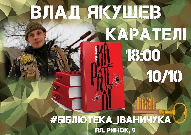 У середу 10 жовтня о 18:00 у Львівській обласній бібліотеці для юнацтва імені Романа Іваничука (пл. Ринок,9) відбудеться презентація книги Влада Якушева «Карателі», приурочена до Дня захисника України.