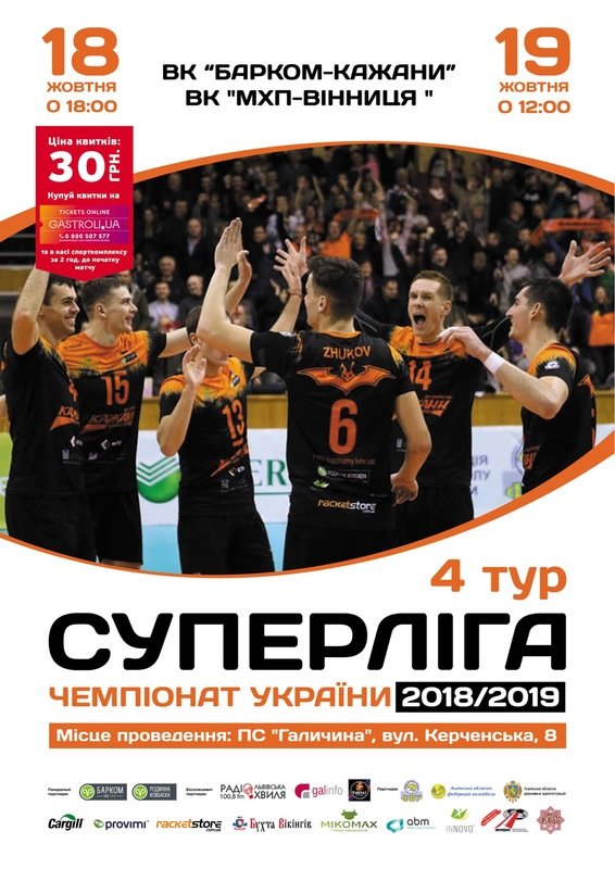 18 жовтня, із матчу між ВК «Барком-Кажани» та ВК «МХП-Вінниця» стартує четвертий тур XXVIIІ Чемпіонату України з волейболу серед чоловічих команд Суперліги.
