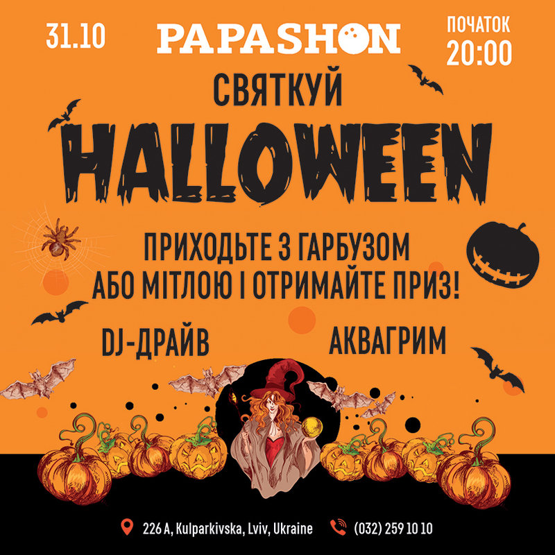 Запрошуємо всіх на довгоочікуване свято страшних веселощів 31 жовтня в Papashon.