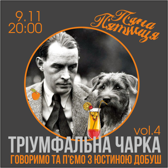 Місце зустрічі – Книжковий ЛЕВ. Три товариші зберуться знов: письменник Еріх Марія Ремарк, журналістка Justina Dobush та пан Кальвадос.