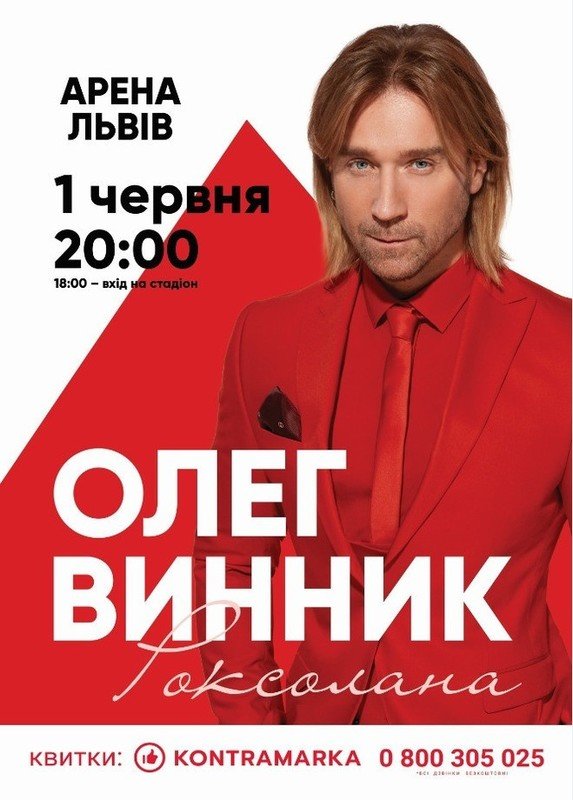 Олег Винник — співак, композитор і автор текстів, за короткий час здобув приголомшливий успіх і сьогодні по праву вважається найзатребуванішим і найгастролюючим артистом. Двічі співак року — володар премій «M1 Music Awards» 2018 і «Золота жар-птиця» 2018», найкрасивіший чоловік України за версією журналу «Viva!». Треки музиканта очолюють провідні чарти СНД, кліпи збирають мільйони переглядів в YouTube. У кожному місті його зустрічають переповнені зали, а квитки на концерти розкуповуються за місяці до заявлених дат. Всього за кілька років сольної кар’єри Винник випустив 6 авторських альбомів, 14 відеокліпів, неодноразово виступав на головних сценах і стадіонах країни.