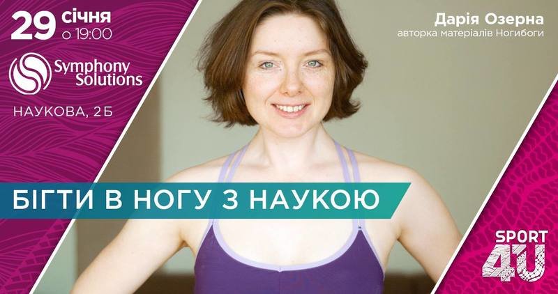 29 та 30 січня до Львова приїжджає Даря Озерна, ведуча блогу ФізКультура на Радіо Культура, авторка матеріалів ВВС Україна та Ногибоги, біолог, популяризаторка науки та здорового способу життя. Відстоює здоровий глузд та доказову медицину. На роботи Дарї посилається Уляна Супрун при розвінчувані міфів у своїх ФБ-постах.