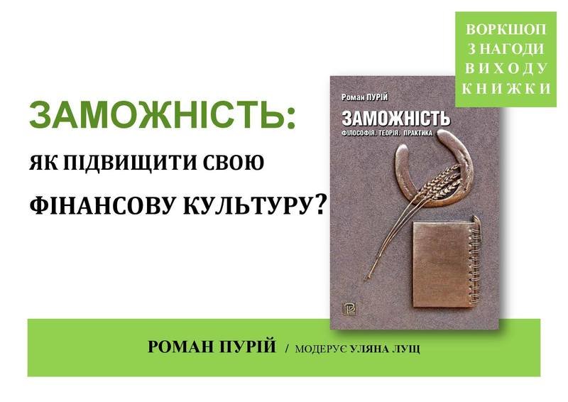 Отримати ці корисні знання і навички Ви можете під час зустрічі з автором книги «Заможність: Філософія. Теорія. Практика» Романом Пурієм.