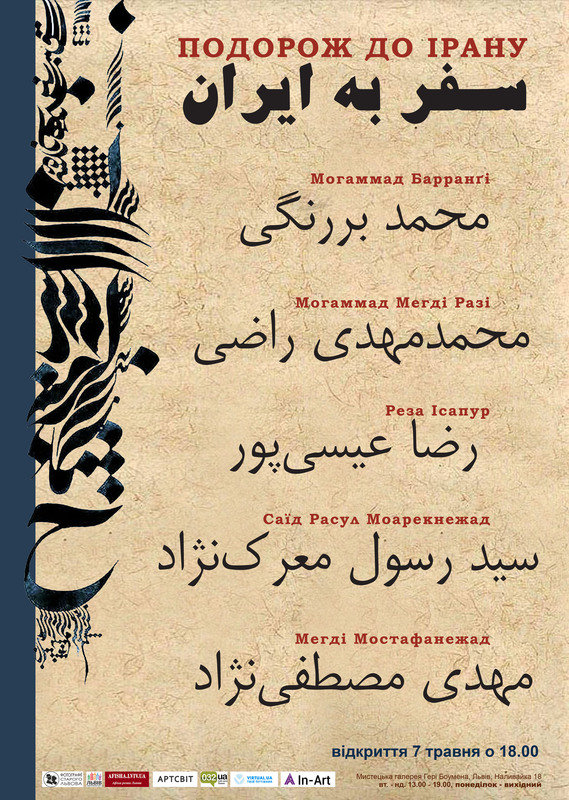 Могаммад Мегді Разі, художник-каліграф, куратор Razi Art Gallery в місті Язд, засновник університетського відділення каліграфічного живопису (“накаші хатт”) в Ірані.Із 1996 року Могаммад Мегді Разі досліджує та офіційно викладає каліграфію та графічний дизайн у місті Язд, а також є запрошеним викладачем в університетах Тегерану. Член журі молодіжних конкурсів графіки та учасник семінарів з мистецтва каліграфії у Тегеранському музеї сучасного мистецтва (Іран). У 2001 році – взяв участь у виставці дизайнерів іранських почерків у “Фарганґестан гонар” (Тегеран). У 2006 році – взяв участь у виставці творів арабської каліграфії (8th Gulf Cooperation Council Fine Arts and Calligraphy Exhibition) (у Маскаті, султанат Оман).Каліграфічні роботи Могаммада Мегді Разі було експоновано на виставці іранського мистецтва в Римі у березні 2015 р.Передбачається проведення майстер-класу каліграфії, що може бути цікавим як для пересічних львів’ян, так і для фахівців у галузі візуального мистецтва. Серед супутніх заходів заплановані поетичні читання, перегляд фільмів, оглядова лекція про сучасне іранське мистецтво.