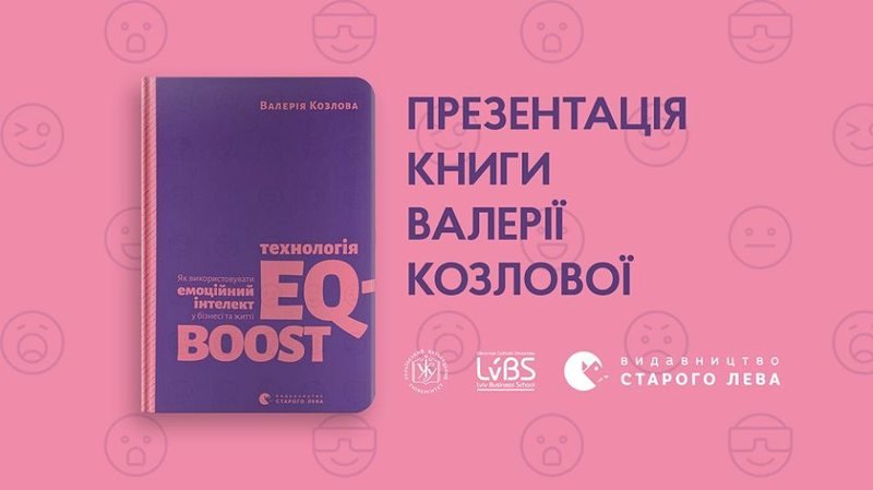Львівська бізнес-школа УКУ (LvBS) та «Видавництво Старого Лева» запрошують на презентацію книги «Технологія EQ-BOOST. Як використовувати емоційний інтелект у бізнесі та житті» авторства Валерії Козлової, що відбудеться 13 червня о 18.30 Центрі Митрополита Андрея Шептицького (вул. Стрийська, 29, паркова аудиторія). Видання є першою книгою українського автора на тему емоційного інтелекту в бізнесі.