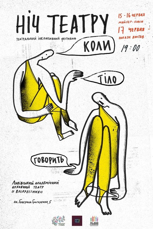 Запрошуємо на камерний фестиваль НІЧ ТЕАТРУ - місце зустрічі альтернативних театральних колективів, що працюють в різних техніках. Цього року нас об'єднала тема руху, пластики, мінімум слів, максимум дії. Крім того, Ніч театру відкриватиме для себе особливе мистецтво. Вперше у фестивалі візьмуть участь інклюзивні колективи з України та Польщі.