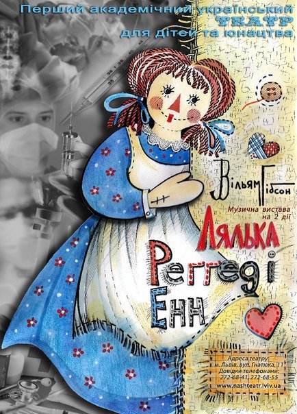 Головною героїнею вистави вистави "Лялька Реґґеді Енн", поставленої за п'єсою Вільяма Гібсона «Ганчір’яна лялька», є маловідомий для нас, але знаковий для дитячої американької культури персонаж Реґґеді Енн (Raggedy Ann) – простенька лялька, вигадана і намальвана письменником Джоном Ґруелом, котра стала настільки популярною, що навіть внесена до «Залу слави іграшок Америки».