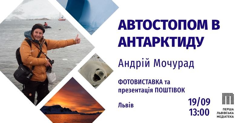 Андрій Мочурад та Наталка Войтович відкриють фотовиставку «Автостопом в Антарктиду» в Львівській медіатеці (вул. Мулярська, 2а) 19го вересня о 13:00.