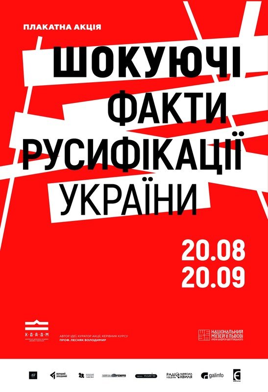 20 вересня о 16:00 в Національному музеї у Львові ім.. А. Шептицького (просп.. Свободи, 20 ) відбудеться закриття плакатної акції ШОКУЮЧІ ФАКТИ РУСИФІКАЦІЇ УКРАЇНИ, авторами якої виступили студенти кафедри графічного дизайну Харківської державної академії дизайну і мистецтв.