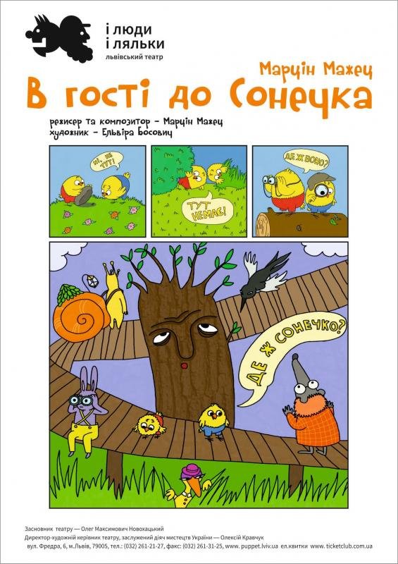 Для двох маленьких курчат вже стало доброю звичкою гукати щовечора Сонечку: "Надобраніч!", а прокинувшись на світанку: "Доброго ранку!". Але одного разу воно не з'явилось на небі. Маленькі непосиди вирішили з'ясувати причину такої поведінки і вирушили до Сонечка в гості. Мандруючи стежинами, чи то власного подвір'я, чи неосяжного світу, курчата пережили незабутні пригоди та зустрічі.
