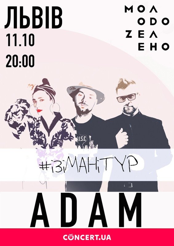 Український неосоул гурт ADAM, який навесні цього року презентував другий студійний альбом «РОНІМ», завітає з концертом до Львова в рамках всеукраїнського #ІзіМаніТур. Виступ відбудеться 11 жовтня у гастропабі MolodoZeleno.