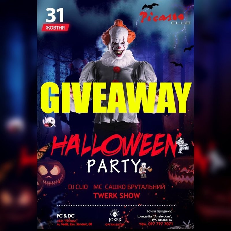 А у нас знову на сторінці Instagram розіграш! Даруємо два квитки на наймоторошнішу вечірку року Halloween!