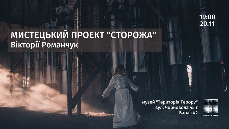20 листопада о 19:00 у музеї «Територія Терору» (барак №2) відбудеться презентація мистецького проекту «Сторожа» авторки Вікторії Романчук. Проект присвячений подіям Революції гідності та пам’яті Небесній сотні.