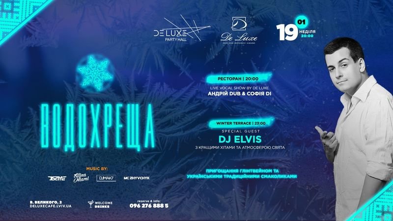 Що є обов'язковим 19 січня? Вірно - стрибнути зранку в ополонку, а увечері файно відпочити з друзями! Приходь святкувати в De Luxe!