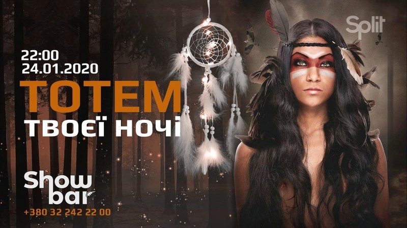Пориньте у світ грації та пластики разом із шоу-баром Split. Ми підготували особливу еротичну програму “Тотем твоєї ночі”. Це ексклюзивна стилізована вечірка, де розкуті індіанки допомагають пізнати власні відверті фантазії. Танцівниці постануть у загадкових образах аборигенок американських земель та заведуть вас у край хвилюючих снів та бажань.Ви можете відчути себе Колумбом, що пізнає континент безмежної грації. Чи стати вождем племені непокірних і пристрасних індіанок.