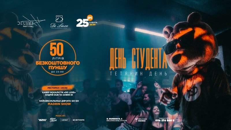 Днів студента багато не буває! 25 січня святкуємо Тетянин день, а отже запрошуємо студентську тусовку Львова в De Luxe!