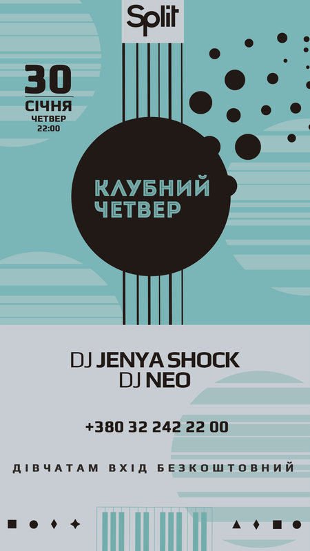 Це серія вечірок у клубі Split Club Lviv, що допомагає налаштуватись на енергійні вихідні. А відпустити усі турботи буднів допоможуть наші резиденти Dj Symanth та Dj Jenya Shock.